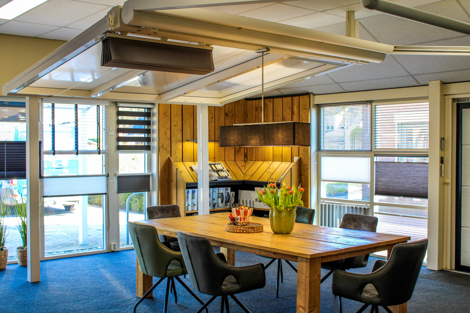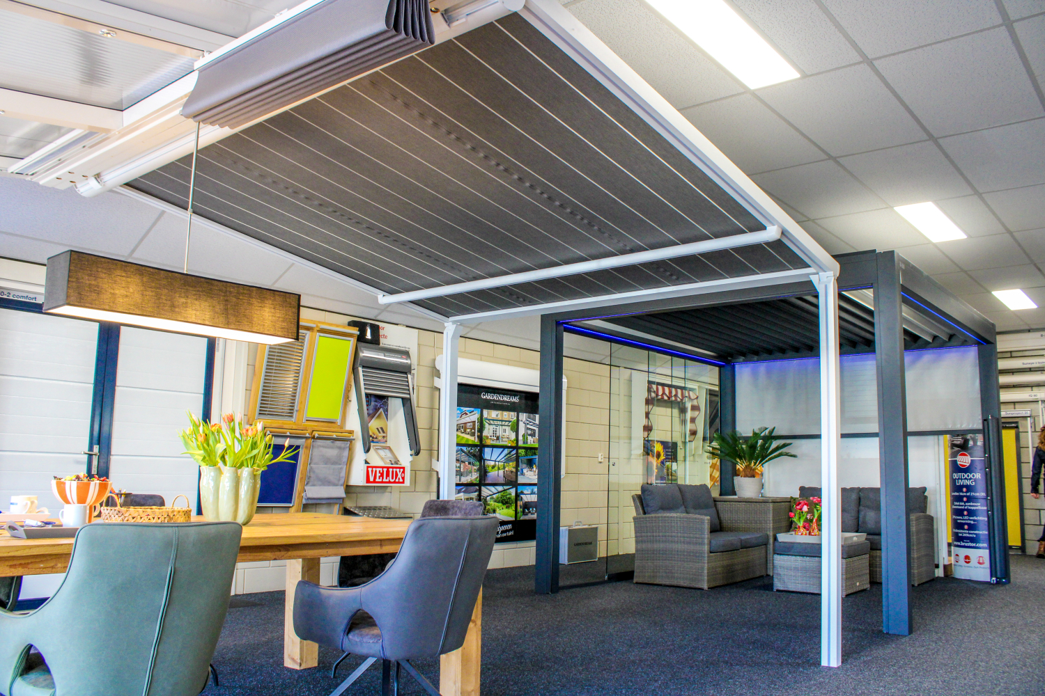 In onze showroom vind je diverse opstellingen en materialen om te bekijken en te ervaren. Je kunt in alle rust rondkijken of een vrijblijvend gesprek voeren met een van onze adviseurs. Natuurlijk kun je ook telefonisch of via onze website een offerte aanvragen.